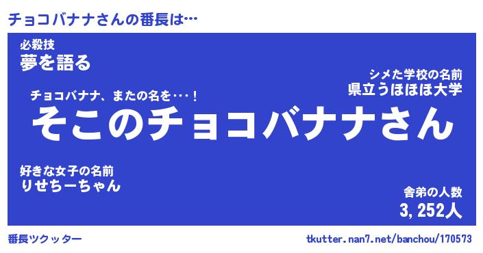 | 男性向けラノベタイトル風あだ名 | 『チョコバナナの憂鬱』 |