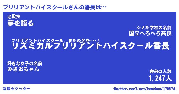 | 男性向けラノベタイトル風あだ名 | 『ブリリアントハイスクールの憂鬱』 |