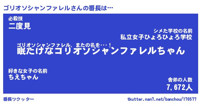 | ヒーロー風カッコイイあだ名 | 『スーパーゴリオソシャンファレル』 |