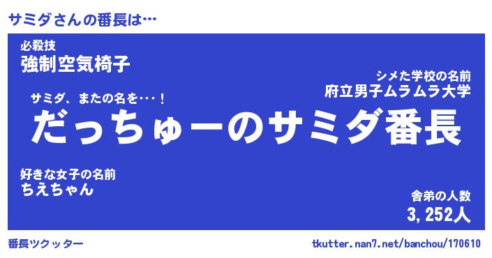 | ヒーロー風カッコイイあだ名 | 『スーパーサミダ』『ウルトラサミダマン』 |