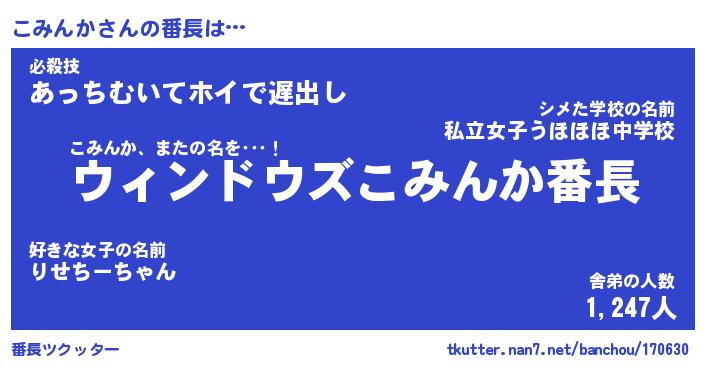 | 意味不明あだ名 | 『ペロリンこみんか』『永久保存こみんか』 |