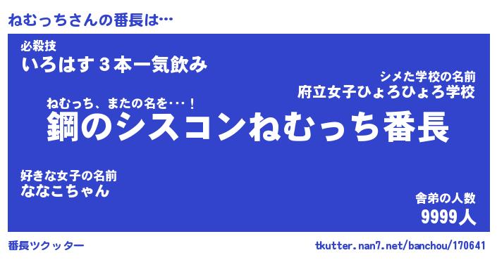 | 意味不明あだ名 | 『ペロリンねむっち』『永久保存ねむっち』 |