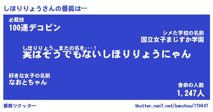 | 意味不明あだ名 | 『ペロリンしほりりょう』 |