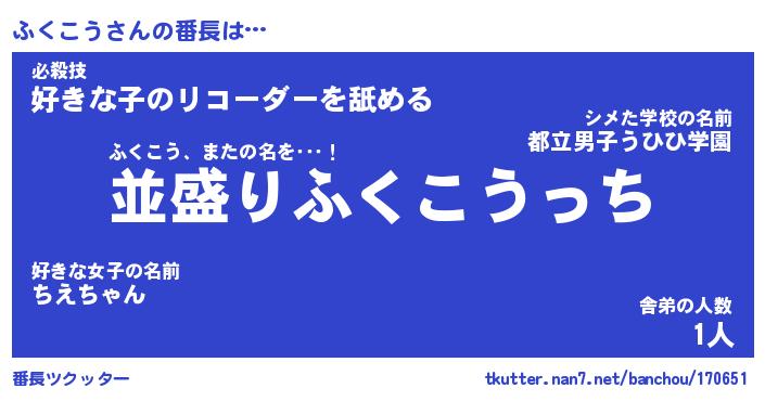 | ヘコむあだ名 | 『ふくもー』『酢こんぶ』『ふくっ子』 |