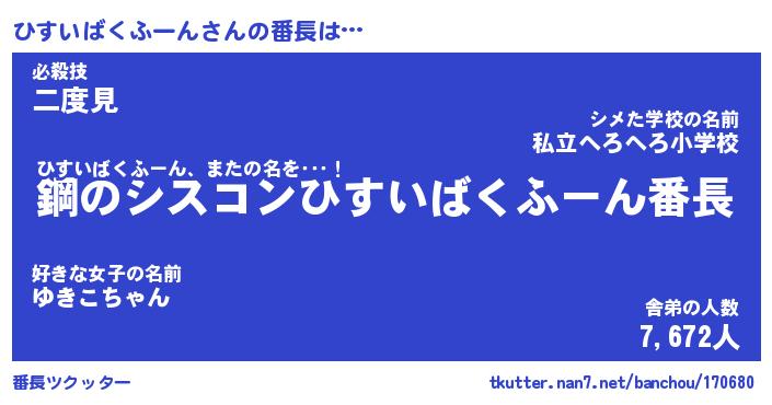 | ピコ太郎風あだ名 | 『ヒコ六郎』『ピヒ太郎』『ヒス三郎』 |