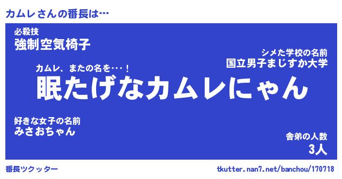 | 意味不明あだ名 | 『ペロリンカムレ』『カムレフォーエバー』 |