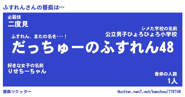| 意味不明あだ名 | 『ペロリンふすれん』『永久保存ふすれん』 |