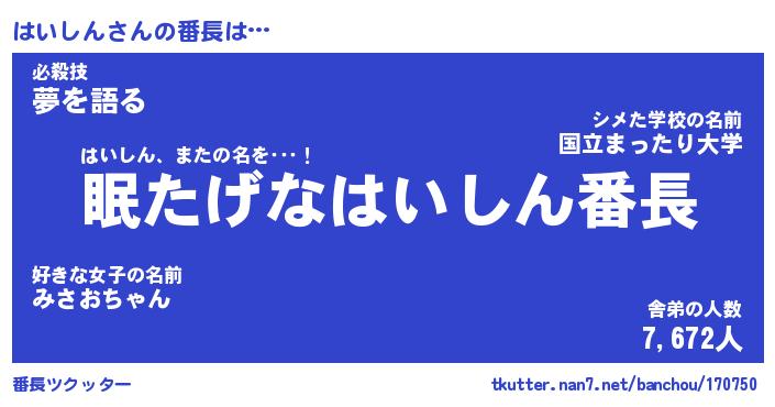 | ピコ太郎風あだ名 | 『ハコ五郎』『ピハ十郎』『ハイ八郎』 |