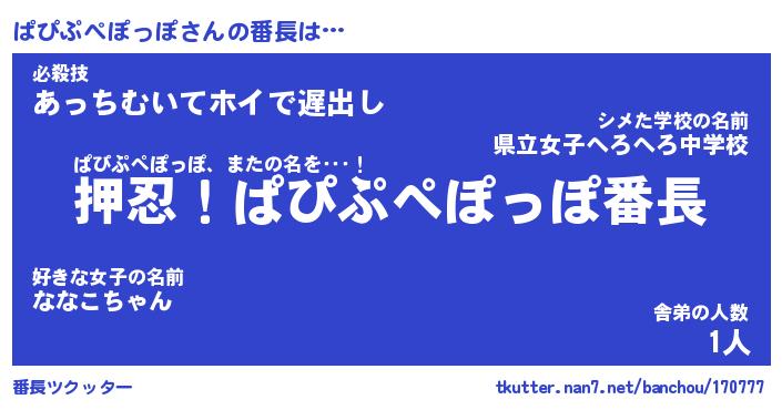 | 伝説のあだ名 | 『封印されしスナイパーぱぴぷぺぽっぽ』 |