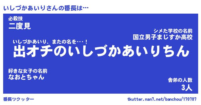 | 2回繰り返すあだ名 | 『いしいし』『いいしし』『おたおた』 |