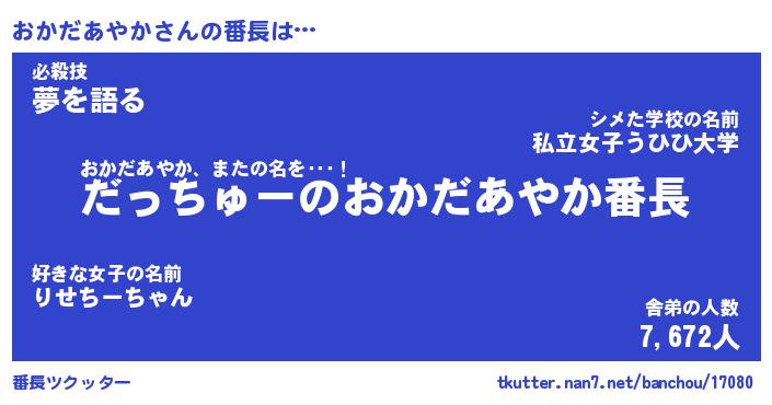 | 肩書あだ名 | 『おかだあやか御曹司』 |