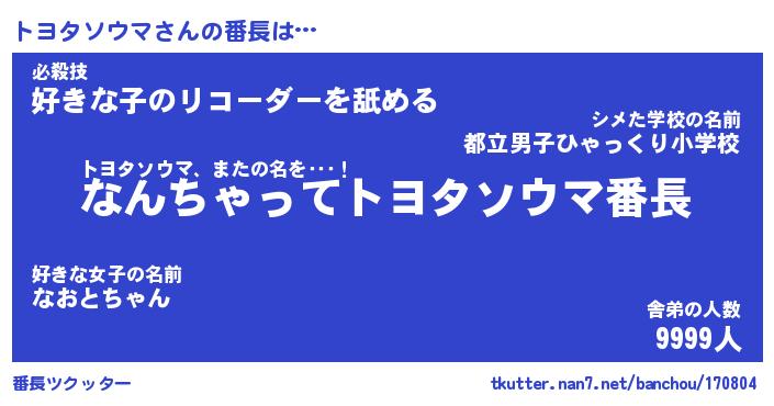 | 欧米人風あだ名 | 『マイケルトヨタソウマ』 |