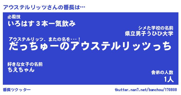 | ポケモン風あだ名 | 『アウチュウ』『アウスダネ』 |