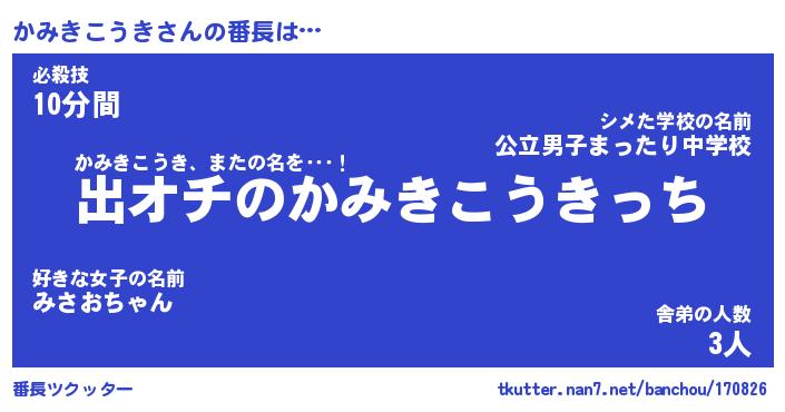 | ヘコむあだ名 | 『かみにー』『牛乳』『かみ太郎』 |
