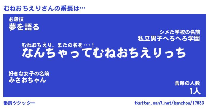 | 肩書あだ名 | 『むねおちえり店長』『むねおちえり団長』 |