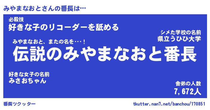 | ピコ太郎風あだ名 | 『ミコ八郎』『ピミ六郎』『ミヤ六郎』 |