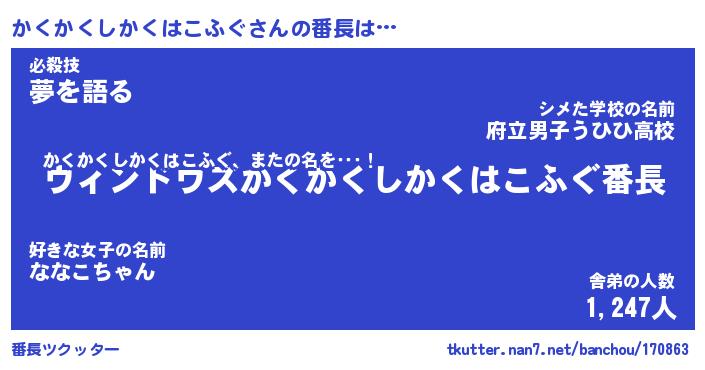 | ヒーロー風カッコイイあだ名 | 『スーパーカクカクシカクハコフグ』 |