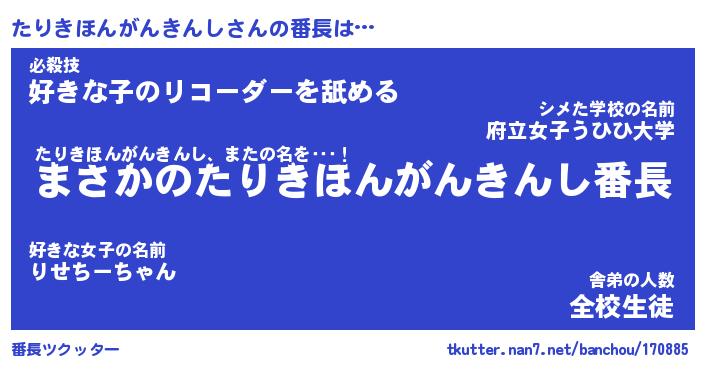 | ヒーロー風カッコイイあだ名 | 『スーパータリキホンガンキンシ』 |