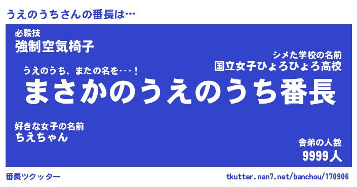| ピコ太郎風あだ名 | 『ウコ四郎』『ピウ次郎』『ウエ六郎』 |