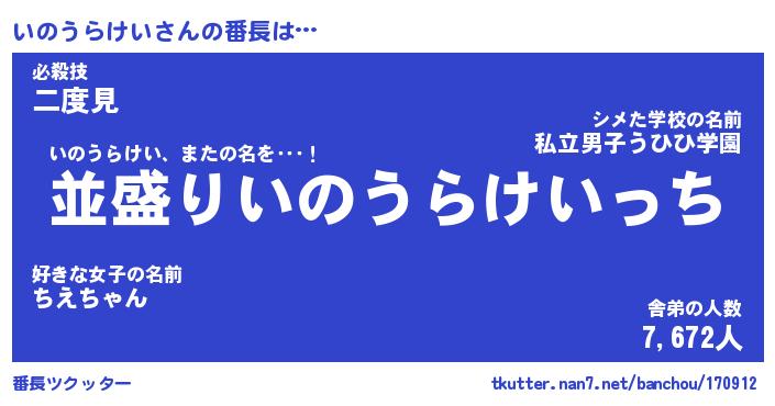 | ピコ太郎風あだ名 | 『イコ四郎』『ピイ五郎』『イノ三郎』 |