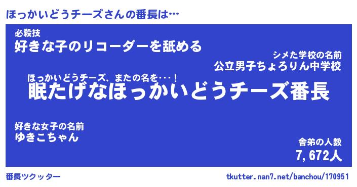 | 意味不明あだ名 | 『ペロリンほっかいどうチーズ』 |