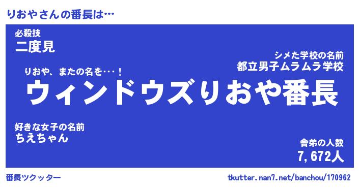 | 伝説のあだ名 | 『伝説のスナイパーりおや』 |