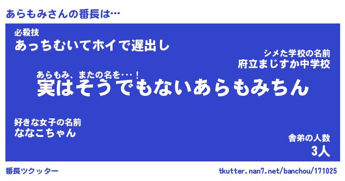 | 意味不明あだ名 | 『ペロリンあらもみ』『永久保存あらもみ』 |