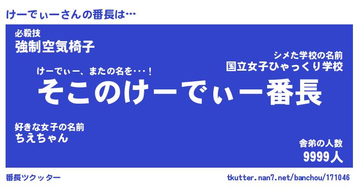 | 男性向けラノベタイトル風あだ名 | 『けーでぃーの憂鬱』 |