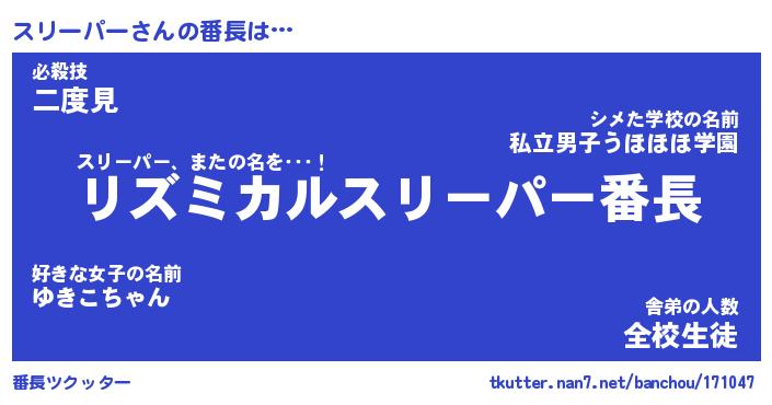 | ファンタジー風あだ名 | 『スリフェル』『エターナルスリーパーー』 |