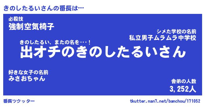 | ピコ太郎風あだ名 | 『キコ十郎』『ピキ三郎』『キノ五郎』 |