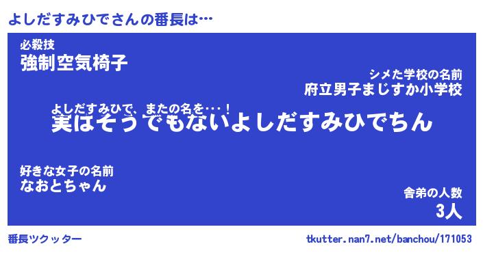 | ヒーロー風カッコイイあだ名 | 『スーパーヨシダスミヒデ』 |