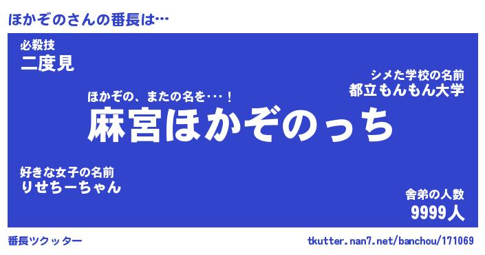 | 意味不明あだ名 | 『ペロリンほかぞの』『永久保存ほかぞの』 |