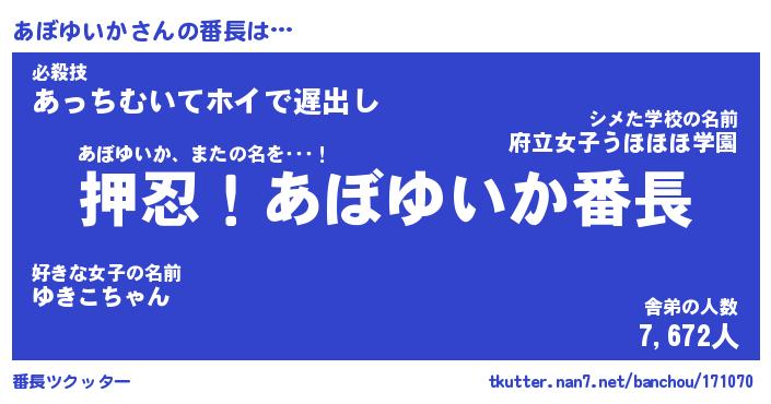 | ファンタジー風あだ名 | 『アボフェル』『エターナルアボユイカー』 |