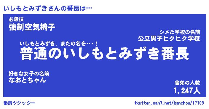 | ヘコむあだ名 | 『いしもー』『牛乳』『いしっ子』 |