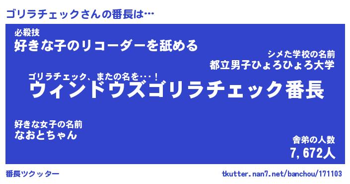 | 男性向けラノベタイトル風あだ名 | 『ゴリラチェックの憂鬱』 |