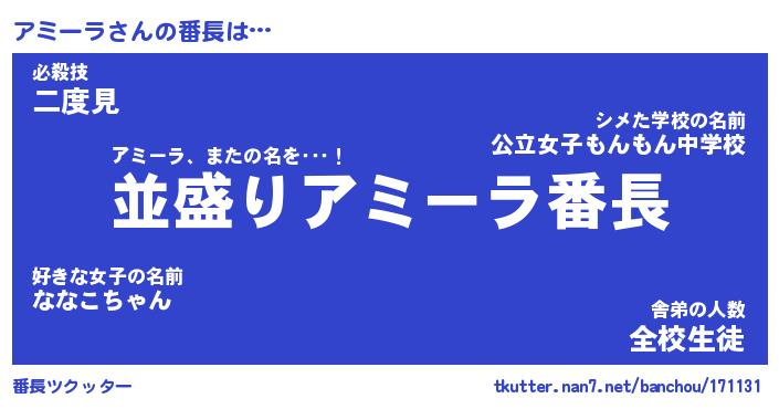 | 意味不明あだ名 | 『ペロリンアミーラ』『永久保存アミーラ』 |
