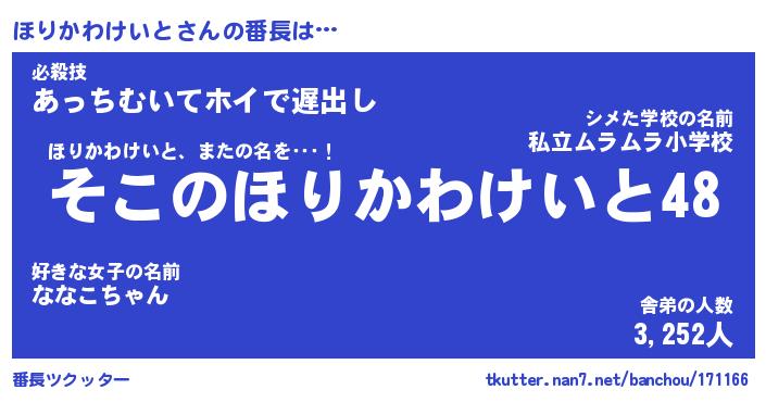| ヘコむあだ名 | 『ほりにゅー』『つくし』『ほり太郎』 |