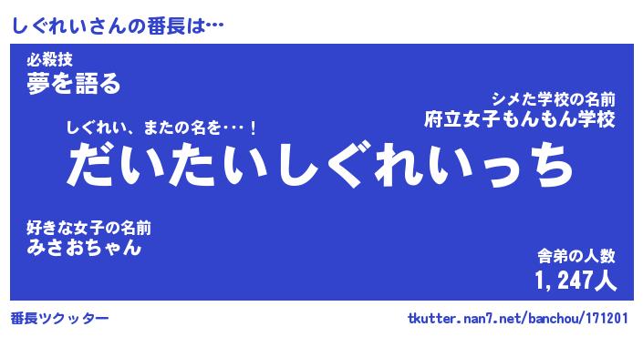 | 肩書あだ名 | 『しぐれい店長』『しぐれい総理大臣』 |