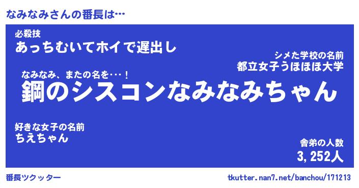 | 欧米人風あだ名 | 『マイケルなみなみ』『ウサインなみなみ』 |