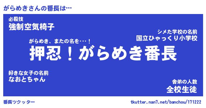 | 2回繰り返すあだ名 | 『がらがら』『ががらら』『うずうず』 |
