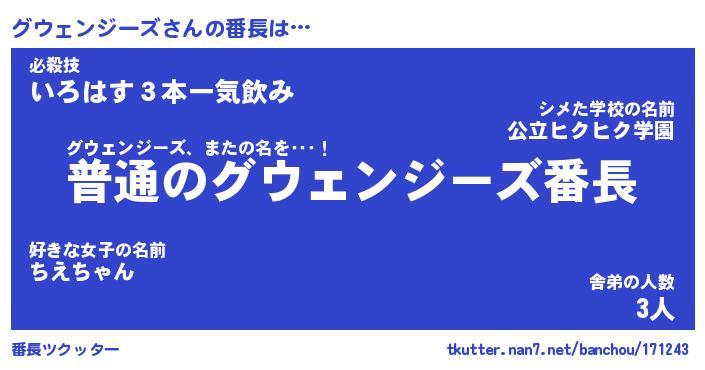 | 男性向けラノベタイトル風あだ名 | 『グウェンジーズの憂鬱』 |