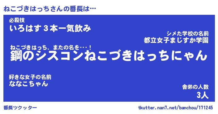 | 伝説のあだ名 | 『封印されし傭兵ねこづきはっち』 |