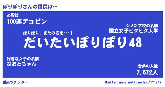 | 意味不明あだ名 | 『ペロリンぽりぽり』『永久保存ぽりぽり』 |