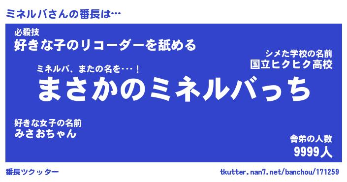 | ヘコむあだ名 | 『ミネにゅー』『酢こんぶ』 |