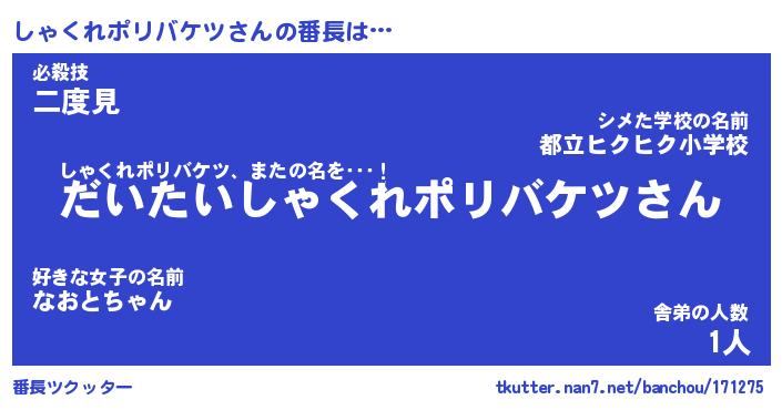 | 2回繰り返すあだ名 | 『しゃしゃ』『ししゃゃ』『いじいじ』 |