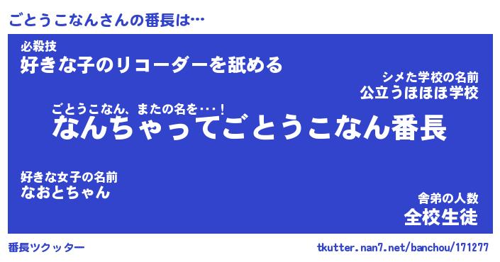 | 伝説のあだ名 | 『伝説のスナイパーごとうこなん』 |