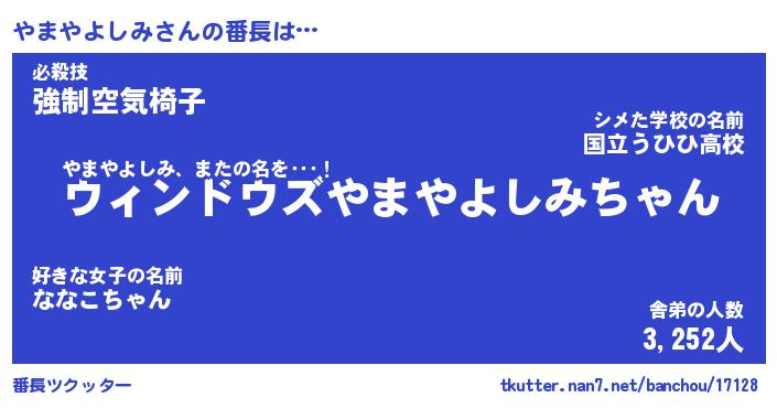 | ピコ太郎風あだ名 | 『ヤコ五郎』『ピヤ史郎』『ヤマ三郎』 |