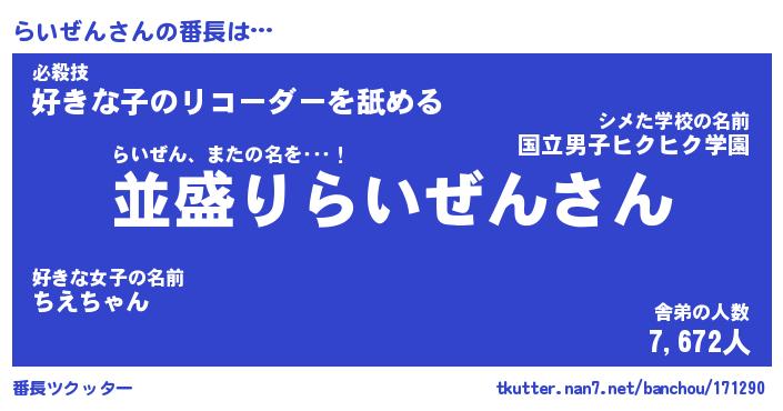 | ピコ太郎風あだ名 | 『ラコ三郎』『ピラ五郎』『ライ四郎』 |
