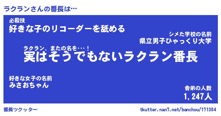 | 意味不明あだ名 | 『ペロリンラクラン』『永久保存ラクラン』 |