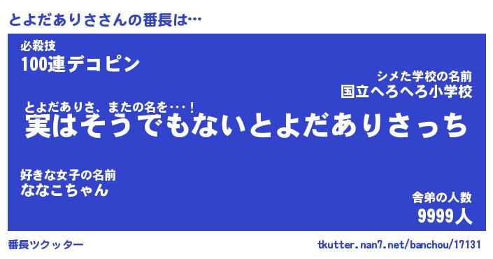 | 伝説のあだ名 | 『封印されしスナイパーとよだありさ』 |